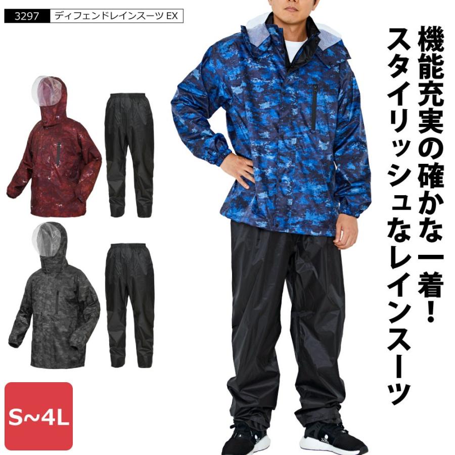 レインウェア メンズ 上下 レインスーツ 通勤 通学 レインコート カッパ 合羽 雨具 レディース アウトドア 作業 プリント柄 3297 ディフェンド レインスーツex カジメイク公式 ワーカービー 通販 Yahoo ショッピング